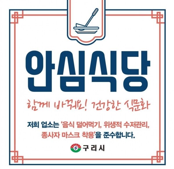 안심식당이란 감염병에 취약한 우리 식사 문화를 개선하고자 농림축산식품부에서 도입한 외식업소 인증제로 구리시는 154개소가 지정되어 있다.
