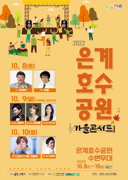 시 관계자는 “은계호수공원의 멋진 가을 정취와 함께 다양한 즐거움이 가득한 가을 콘서트를 통해 시민 모두가 좋은 추억을 쌓길 바라고 콘서트를 계기로 은계지역에도 시민들의 꾸준한 관심을 부탁드린다”고 전했다.