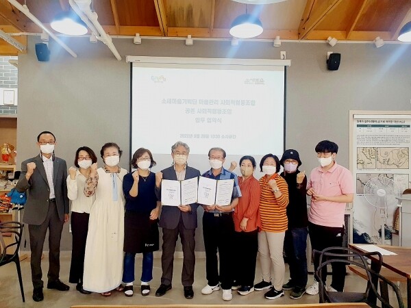 협약식에는 소새마을기획단 마을관리 사회적협동조합 신승직 이사장, 사회적협동조합 공존 임성현 이사장 등이 참석했다.