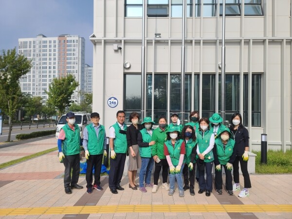 새마을지도자·부녀회 회원들은 마산동 행정복지센터와 버스정류장을 이용하는 주민들이 산뜻한 마음을 가질 수 있도록 가을꽃을 다채롭게 섞어서 구성했다.
