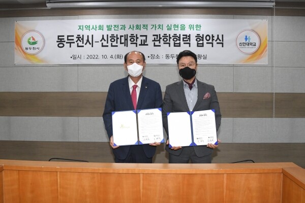 동두천시와 신한대학교는 긴밀한 업무협조 체계를 구축해 시정 현안 사항에 대한 공동연구 시민 평생교육을 위한 인적·물적 자원 교류 공모사업 도시재생사업 지역학 연구 청소년 프로그램 개발 지역경제 발전 공무원 역량개발에 관한 사항에 대해 협력하기로 했다.