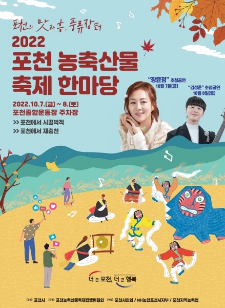 이번 축제는 포천의 ‘맛’과 ‘흥’ 풍류장터를 주제로 코로나19 등 일상에 지친 시민들에게 포천의 우수하고 품질 좋은 사과, 포도, 인삼, 버섯, 돼지고기, 막걸리, 가공품 등 다양한 농축산물 직거래장터와 문화공연이 어우러져 포천을 맛보는 축제가 펼쳐질 예정이다.