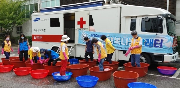 적십자봉사회에서 이동세탁용 차량을 지원하고 아파트 관리사무소에서 사전 방송 안내와 함께 수도 등을 제공하는 등 참여기관들의 적극적인 협조가 이뤄지고 있으며 이날엔 약 10명 이상의 봉사자가 참여해 20개 이상의 이불 세탁을 진행했다.