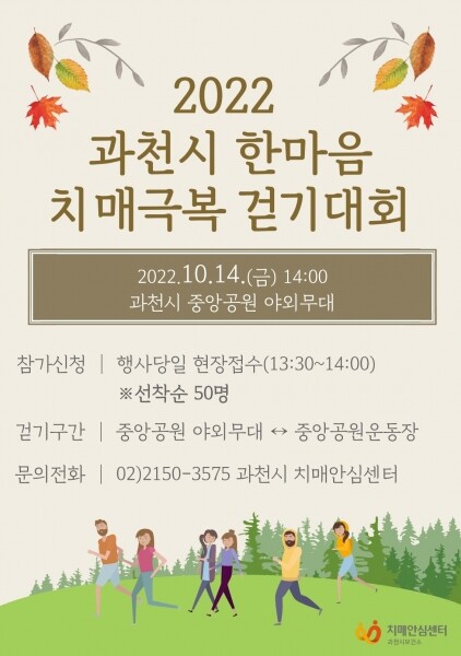 이번 행사는 치매 관리의 중요성을 널리 알리고 치매에 대한 관심을 높이기 위해 열리는 것으로 과천시는 시민들의 관심과 참여를 당부했다.