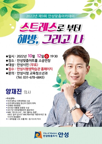 이날 현장 강연에는 300여명이 참석할 수 있으며 안성시민이라면 누구나 참여할 수 있다.