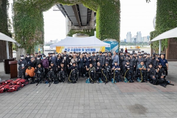 잠수장비를 착용한 잠수요원 10명은 뚝섬유원지를 중심으로 한강 수중에 쌓인 각종 쓰레기와 오염물을 수거하는 작업을 펼쳤다.