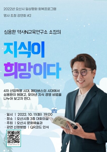 이번 강연에서는 4차 산업혁명 시대, 메타버스의 시대에서 여전히 가치를 가지는 인문학의 가치를 설파하고 심용환 소장이 연구하고 찾아낸 지식 경영 비법을 전달하는 시간을 가지고자 한다.