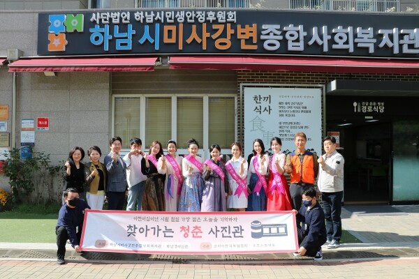 찾아가는 청춘사진관은 ‘가장 젊은 오늘을 기억하자’라는 부제로 하남시미사강변종합사회복지관과 하남경제신문이 주최하고 코리아한복모델협회와 가호스튜디오가 주관해 아리따운 날에에서 한복 10벌, 동부신협에서 돋보기 50개, 신사거리 상인회에서 장바구니 50개를 후원해 진행된 사업으로 민간의 협업으로 추진되어 더욱 뜻깊은 사업이었다.
