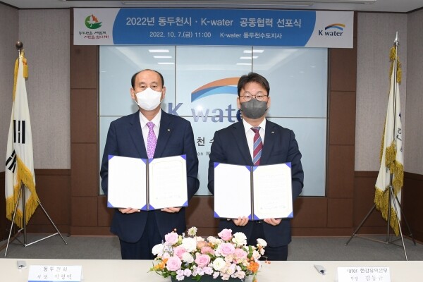 선포식에 참석한 박형덕 동두천시장과 K-water 한강유역본부장은 공동협력 선언문에 서명하고 동두천시 수돗물의 안전 및 위생 강화, 고객 만족 향상을 최우선 가치로 해 지방상수도 운영효율화사업 실시협약이 성실하게 이행될 수 있도록 양 기관이 상호협력하기로 했다.