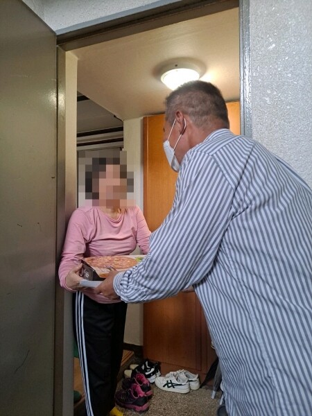 이날 소요동행정복지센터와 로컬드림봉사회는 함께 발굴한 관내 저소득 한부모 등 10가구를 방문해 피자를 전달하고 안부를 물었다.