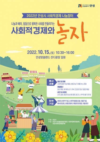 이번 나눔장터는 안성시의 우수한 사회적경제 제품을 시민에게 소개하고 사회적 가치를 홍보하기 위해 마련됐으며 15일 오전 10시 30분부터 오후 4시까지 열린다.