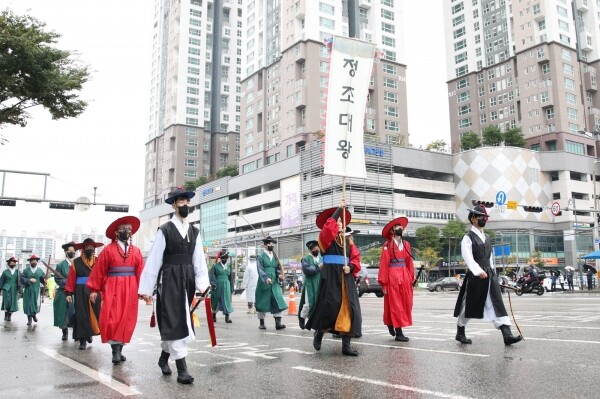 특히 이번 행사에서는 의왕시 홍보대사로 활동 중인 이문식배우가 정조대왕 역할을 맡고 혜경궁홍씨, 청연군주, 청선군주 주요 배역으로 의왕시민과 의왕시 직원이 참여해 궂은 날씨에도 현장을 찾은 많은 시민들에게 큰 호응을 얻었다.