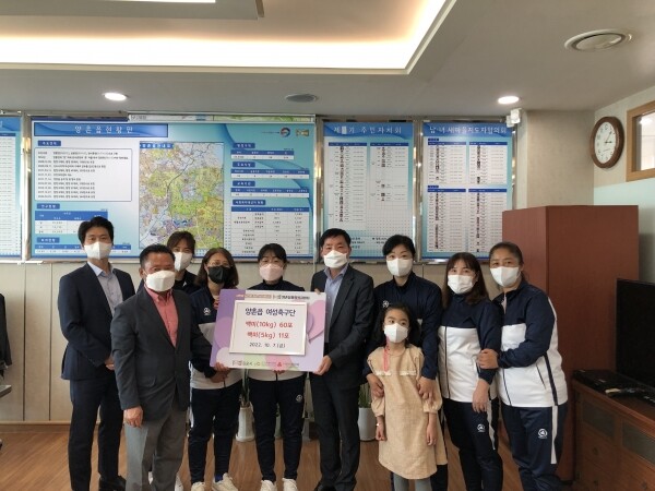 이 읍장은 “여성 축구 저변확대를 위해 묵묵한 역할을 하고 계신 양촌읍 여성축구단에서 이렇게 뜻깊은 선행을 펼쳐 주신 것에 대해 진심으로 감사하다”며 “읍에서도 축구단에 대한 지원을 아끼지 않도록 하겠다”고 말했다.