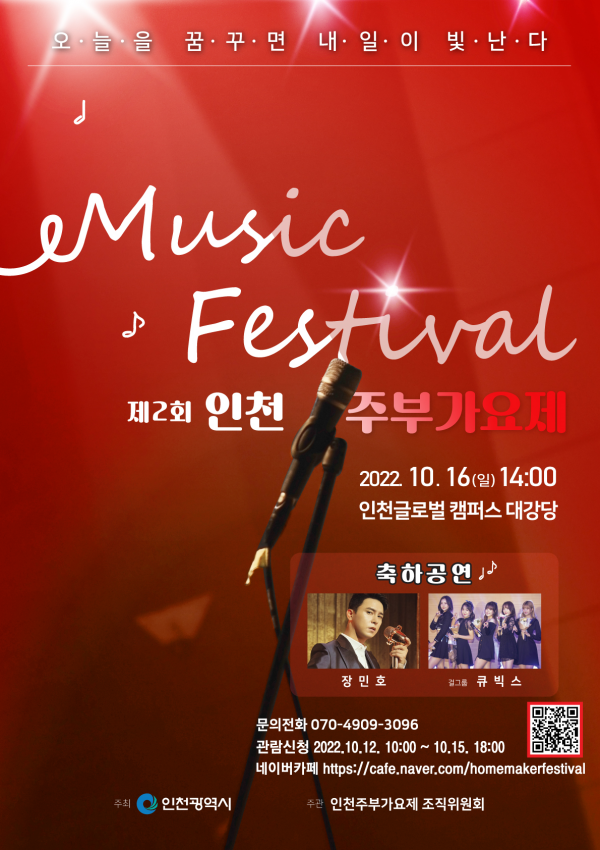 이번 제2회 인천주부가요제는 ‘가슴속에만 담아두었던 주부들의 특별한 이야기’라는 주제로 주부라는 타이틀을 잠시 내려놓고 한 사람의 예술가로서 소통하고 인생의 가치를 높이기 위해 기획됐다.