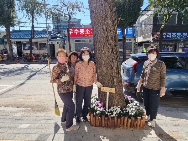 꿈꾸는 60시대 구성원들은 전곡읍 전곡역 농협사거리에서 통일평생교육원 앞 구간에 위치한 가로수에 화단을 조성했다.