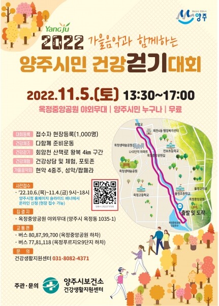 대회참여를 희망하는 시민은 오는 11월 4일까지 양주시청 홈페이지에서 온라인으로 신청할 수 있으며 행사당일 운영본부를 통해 현장접수도 가능하다.