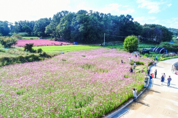 지난 8월 시에서 파종한 코스모스는 10월 초순부터 꽃송이가 하나둘씩 피어나 현재는 절정을 이루고 있어 가을의 진한 향기를 맡으며 농촌경관을 감상하고 즐기는 지역주민과 방문객들의 발길이 이어지고 있다.
