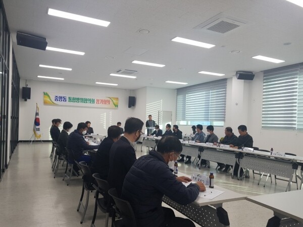 한편 박수영 중앙동방위협의회위원장은 “바쁘신 가운데 중앙동방위협의회 활동을 위해 한마음 한뜻으로 뭉쳐주시는 위원님들께 감사하며 우리 방위협의회의 활동 하나하나가 중앙동 발전을 위해 보탬이 되길 바란다”고 밝혔다.