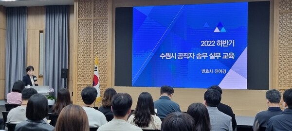 수원시 관계자는 “공직자들의 소송 대응 능력을 높이기 위해 실무 교육을 마련했다”며 “공직자들이 법률 행정에 대한 이해를 높이고 전문성을 갖춘 행정서비스를 실현하는 데 도움이 됐길 바란다”고 말했다.