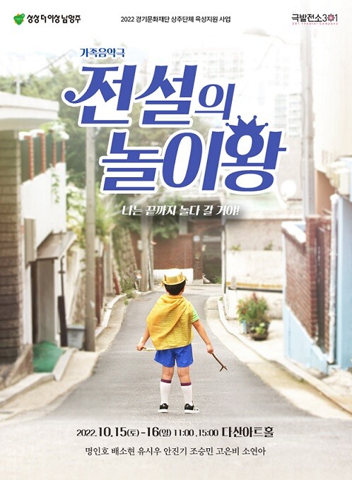 가족음악극 ‘전설의 놀이왕’은 학업에 지친 아이들의 유일한 아지트였던 놀이터가 철거되고 주차장이 들어선다는 소문이 퍼지면서 놀이터를 사수하기 위한 아이들의 활약을 그린 작품으로 가을철을 맞아 가족들이 함께 즐길 수 있는 음악극이다.