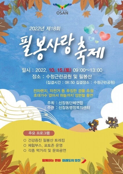 시에 따르면 이번 축제는 신장동에 위치한 필봉산을 가족, 이웃이 함께 등반하고 각종 체험부스, 먹거리, 문화공연, 나눔장터 등을 운영해 지역주민들이 함께하는 소통의 장으로 준비했다.