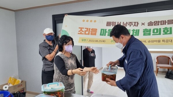 이번 반찬 나누기 행사는 마을공동체 ‘배워서 남주자’와 함께 진행했으며 공동체 회원과 조리읍 직원 10여명이 장곡1리 경로당에 반찬을 전달하고 안부를 전했다.