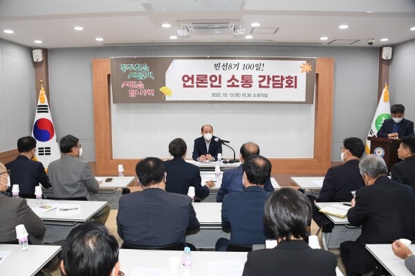박형덕 동두천시장은 지난 13일 시청 소회의실에서 출입 언론인 30여명이 참석한 가운데 민선8기 출범 100일 언론인 소통 간담회를 가졌다.
