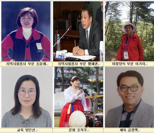 지역사회봉사 부문에서는 조윤례, 황해권 주민이 공동 선정됐고 미풍양속 부문 이기자, 교육 부문 양은선, 문화 부문 조옥주, 체육 부문 공경택 주민이 수상의 영예를 안았다.