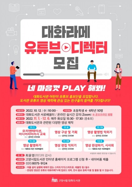 지역 도서관을 알리고 유튜버를 꿈꾸는 어린이들의 꿈을 키워주는 시간이 될 예정이다.