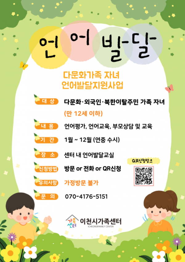 해당사업은 이천시가족센터 내 언어발달교실에서 진행되며 이천시가족센터는 중리동행정복지센터 건물 3층에 위치하고 있다.