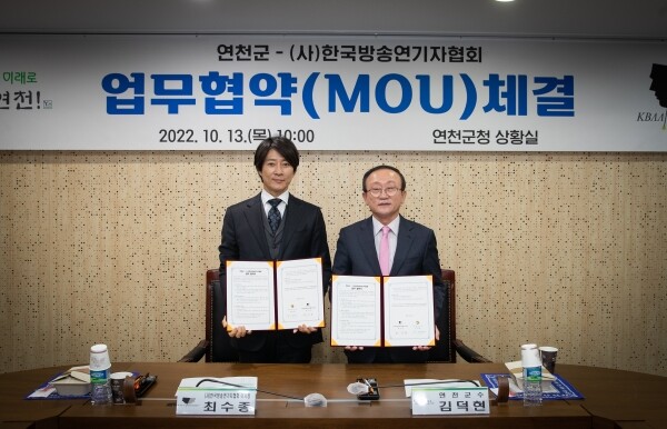 군과 연기자협회는 13일 군청 본관 2층 상황실에서 김덕현 연천군수와 최수종 이사장 등이 참석한 가운데 ‘대중문화예술을 통한 상생발전 업무협약’을 맺었다.