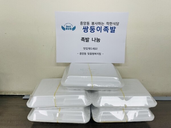 중앙동장은 “맛있는 족발을 흔쾌히 후원해 주시는 손영희 대표님 덕분에 복지 그늘로 발굴된 소외계층에 필요한 서비스를 지원할 수 있게 되어 늘 감사드린다”고 말했다.