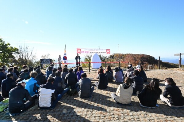 제막 행사에 앞서 강수현 시장과 행사 참여자들은 감악산 등산로 초입인 남면 신암저수지 상류부에 집결해 주 등산로인 3번 노선을 따라 악귀봉, 형소봉, 장군봉을 거쳐 정상인 비봉까지 함께 올랐다.