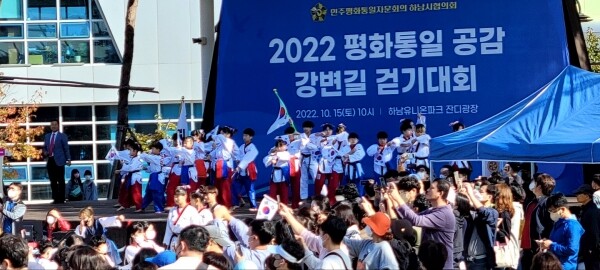 이현재 하남시장은 "통일은 안보의식의 바탕에서 평화통일이 시간이 온다 공감 걷기대회를 통해 국가안보와 평화를 기원하는 뜻깊은 시간이 되시길 바란다”고 말했다.