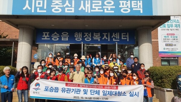 이에 이의헌 포승읍장은 “환경정화활동에 참여해 주신 포승읍 유관기관 및 단체 여러분들께 감사드리고 이번 마라톤 대회를 방문하는 많은 선수단과 관광객들에게 깨끗하고 아름다운 평택의 인상을 심어주기 위해 노력하겠으며 대회가 성공리에 막을 내릴 수 있도록 하겠다”고 말했다.