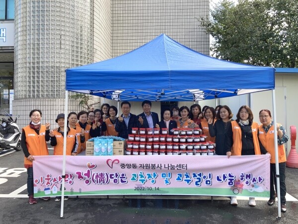 이상기 중앙동장은 “올해도 뜻을 모아 주변 이웃에게 나눔을 실천해주신 중앙동 자원봉사 나눔센터 회원들에게 감사”하다며 “앞으로도 지역사회의 어려운 이웃을 지속적으로 발굴해 더불어 살기 좋은 중앙동을 만들어 가겠다”고 말했다.