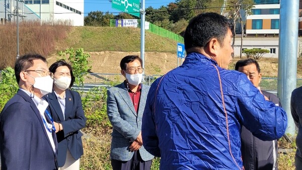 박명수, 황세주 의원은 현장을 둘러보고 담당공무원 및 현장감리인에게 민원인들이 제기한 문제점들에 대한 해결 방안 검토를 요청했다.