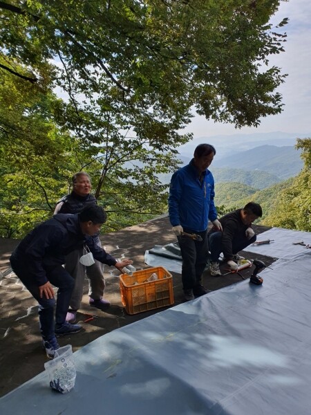 이에 ‘나눔 내도척회’는 공사 장비 차량이 집까지 접근할 수 있도록 길을 만들고 지붕 전체를 특수 천막으로 덮어 물이 새지 않게 하는 작업을 했다.