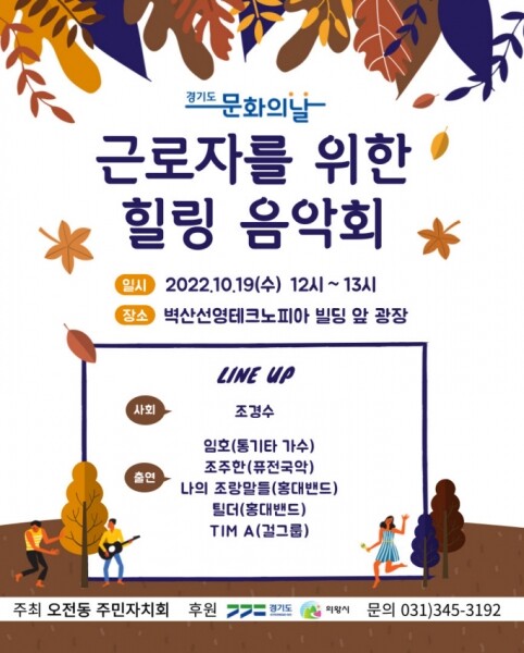 2022년 경기도 문화의 날 문화예술 프로그램 지원사업의 일환으로 열리는 이번 음악회는 경기도와 의왕시가 후원하고 오전동주민자치회가 주최한다.
