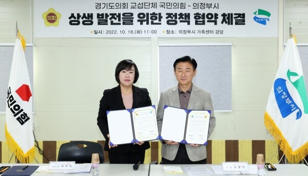 이날 행사는 경기도의회 국민의힘 대표의원과 의정부시장의 협약서 서명 및 교환을 시작으로 의정부시 현안사업에 대한 보고를 바탕으로 한 정책협의회 순으로 진행됐다.