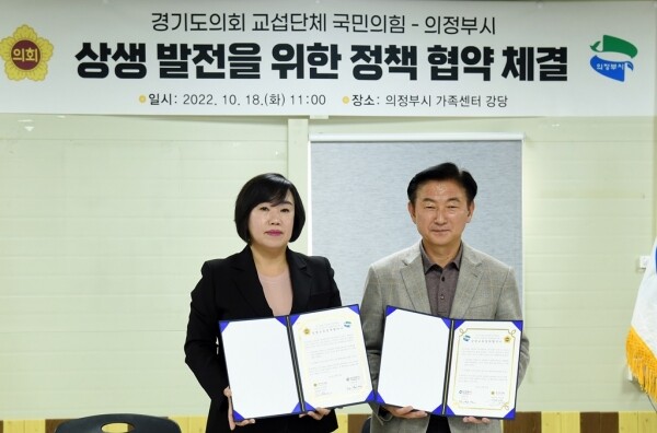 한편 경기도의회 교섭단체 국민의힘은 지역경제 활성화 및 복지체계 정비 등 지역마다 각기 다른 현안의 문제를 지역 상황에 맞게 해결해 나가고자 현장 정책 투어를 계획했고 지자체 중 의정부시를 첫 대상지로 해 협약을 맺고 시의 현안 및 정책에 대한 심층 있는 토론의 시간을 가졌다.