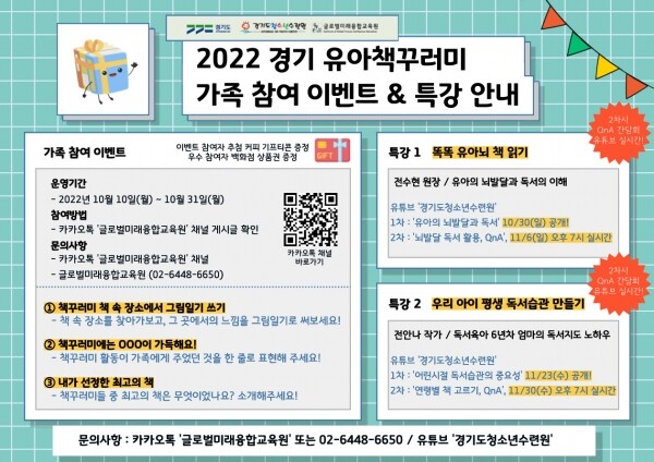 행사 참여는 사업수행기관인 경기도청소년수련원 누리집 공지사항과 카카오톡 채널 ‘글로벌미래융합교육원’을 통해 할 수 있다.