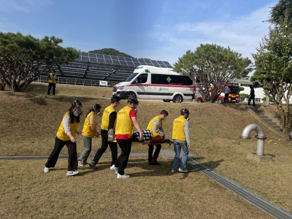 코로나19로 3년 만에 실시된 이번 훈련은 최근 북한의 잇따른 미사일 발사 도발 등 위협에 대비해 시설 파괴 및 누출 시 위험성이 높은 염소가스 누출 방재에 초점을 맞춰 진행됐다.