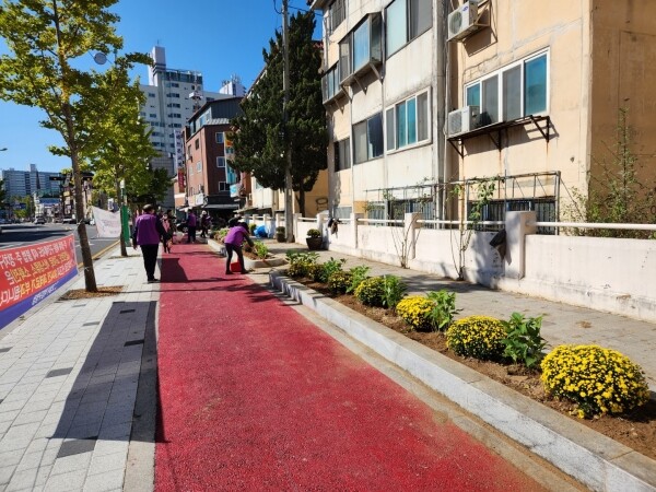 행신4동 문화빌라 부근의 잡초 및 쓰레기를 정비하고 가로화단에 국화 150여 본과 수국 묘목 30그루를 식재했다.