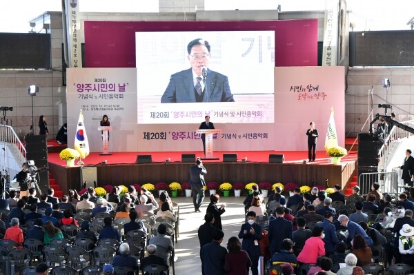 이날 기념식에는 강수현 양주시장과 정성호 국회의원을 비롯한 윤창철 시의회 의장, 안기영 국민의힘 당협위원장, 도·시의원, 전직 시장·군수, 각 기관·단체장, 시민 등 1천여명이 참석한 가운데 어엿한 스무살 청년이 된 양주시민의 날을 함께 축하했다.