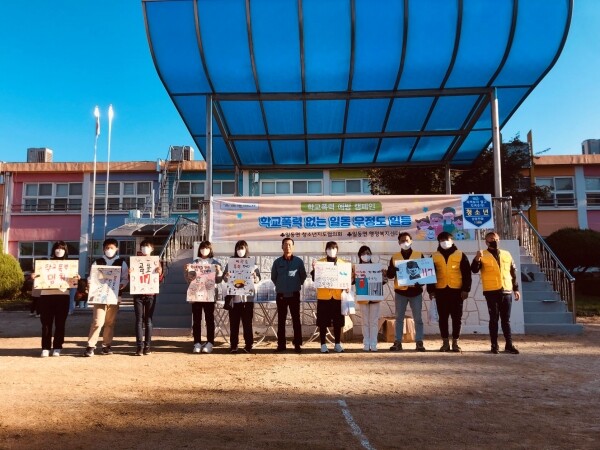 캠페인은 일동면 청소년지도협의회, 운담초등학교, 일동면행정복지센터 등 20여명이 참여한 가운데 ‘학교폭력 없는 일동, 우정도 일등’ 이라는 슬로건으로 진행했다.