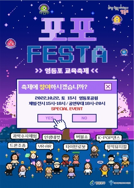 박상준 미래교육과장은 “3년 만에 대면으로 개최되는 축제를 통해 구민의 일상 회복을 지원하고 영등포의 교육 비전을 공유하는 자리가 되길 바란다”며 “특히 코로나19로 활동이 위축되었던 우리 학생들이 마음껏 역량을 펼칠 수 있는 교류의 장이 되길 기대한다”고 전했다.