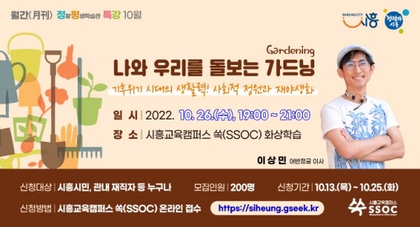 이번 특강은 ‘나와 우리를 돌보는 가드닝’이라는 주제로 진행된다.
