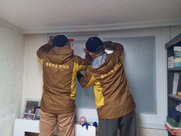 유림동 행복마을관리소의 마을지킴이들은 지난 19일 관내 거동이 불편한 홀몸 어르신 및 단열이 열악한 가정 40여 가구를 방문해 안부를 살피고 출입문과 창문에 등에 에어캡 단열재를 부착했다.