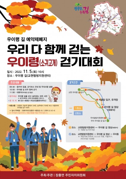 이날 행사는 오전 9시 40분 장흥면 교현리 우이령 길 입구 교현탐방지원센터에 모여 2개 코스로 진행한다.